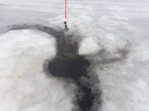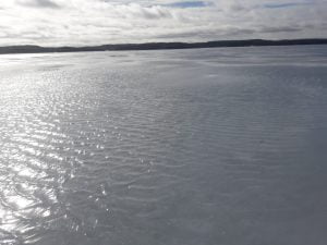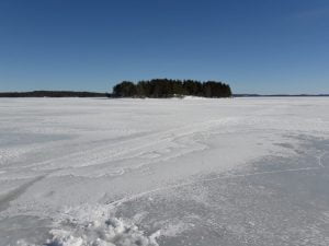 Aamulla 2 astetta lämmintä. Päivällä 6 astetta lämmintä. Tuolla oli kaikki sohjot selällä sulaneet, muuttuneet ihan vedeksi. Siellä oli paikoin jopa 10 senttiä vettä jään päällä. Mönkiäkin ui jo aika…